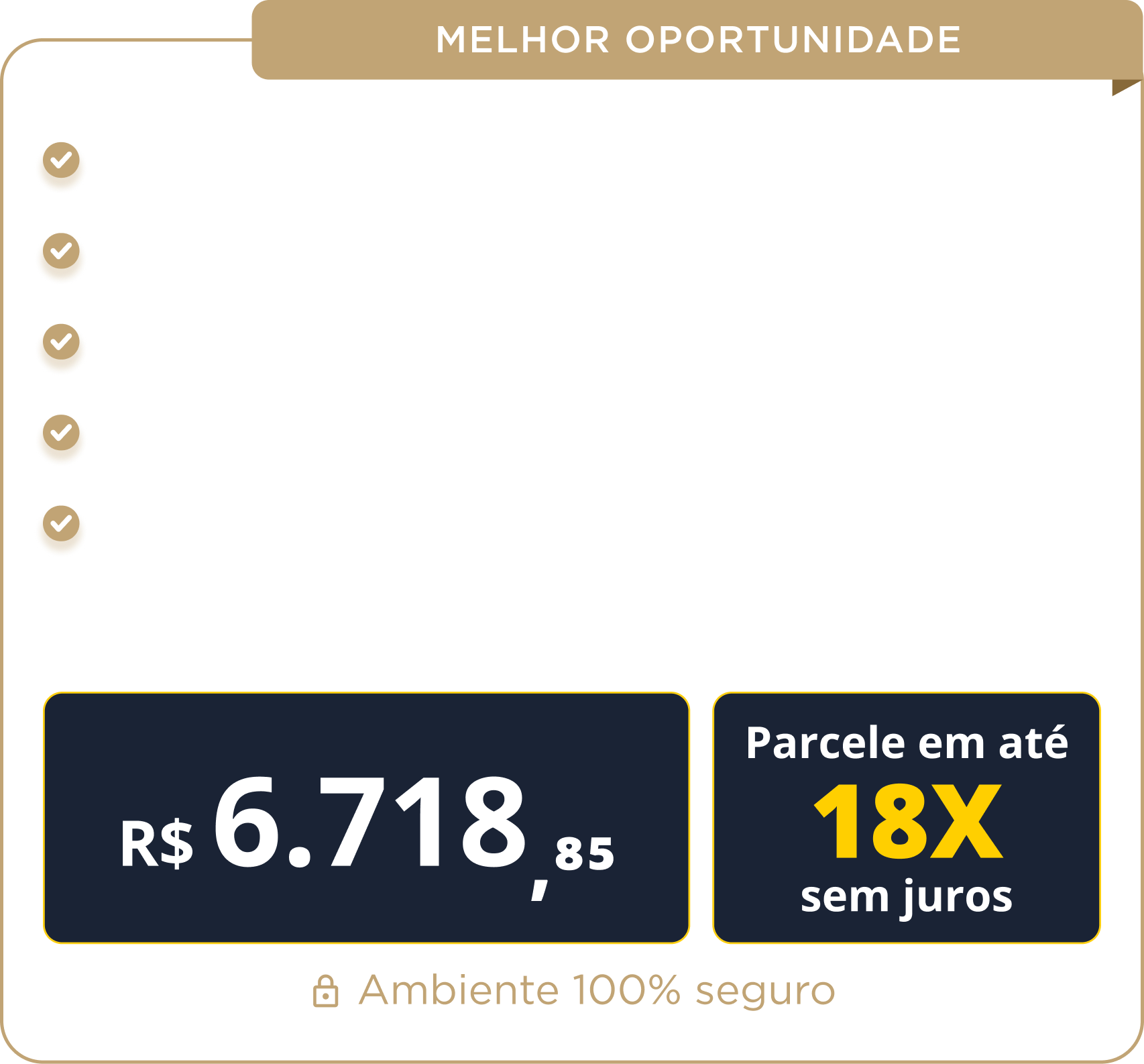 1ª Parcela Facilitada de R$ 199 ou Desconto especial para pagamentos à vista